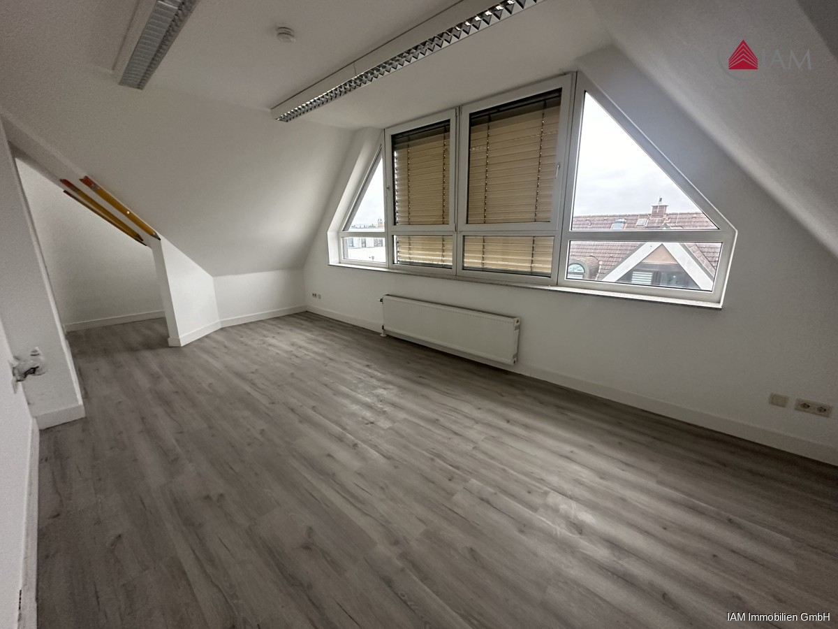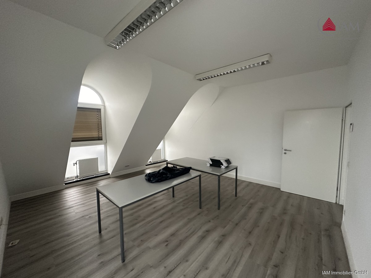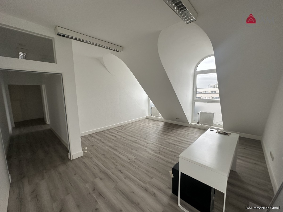 Mit dem Aufzug gelangen Sie direkt in Ihr neues Büro im Dachgeschoss eines Bürozentrums, das sich auf die Immobilien- und Baubranche spezialisiert hat. Die großzügigen 128qm verteilen sich auf 4 gut geschnittene Bürozimmer und einen einladenden Eingangsbereich, der sich ideal als Empfangs- oder Aufenthaltsraum nutzen lässt.