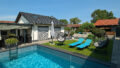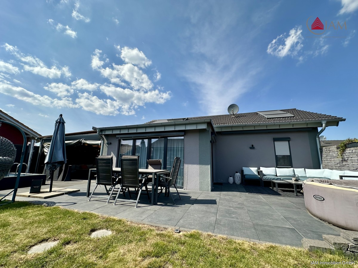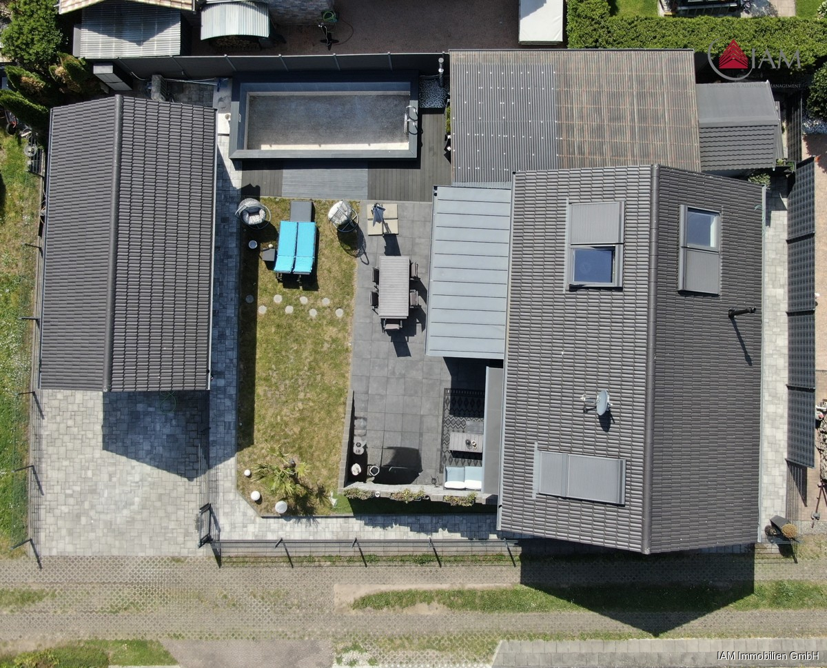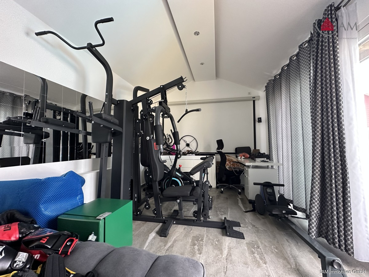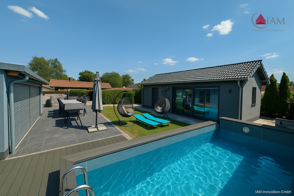 Der Außenbereich bietet ein außergewöhnliches Maß an Lebensqualität: Eine umlaufende, großzügige Terrasse schafft fließende Übergänge zwischen Wohnraum, Wintergarten und Garten. Das gepflegte Grundstück beherbergt nicht nur ein Gartenhaus, sondern auch einen eigenen Pool sowie ein separates Poolhaus, das als privates Wellness und Fitnessstudio dient. Dort befinden sich moderne Trainingsgeräte, ein weiterer voll ausgestatteter Sanitärbereich mit Toilette und Whirlpool sowie eine Sauna – ideal für entspannte Stunden oder aktive Auszeiten direkt am eigenen Rückzugsort.