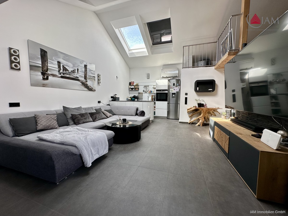 Das Haus selbst bietet rund 70qm Wohnfläche, intelligent aufgeteilt und hochwertig ausgestattet. Beim Eintritt empfängt Sie ein offener, lichtdurchfluteter Wohn und Kochbereich mit großzügigem Raumgefühl – das Herzstück der Immobilie. Direkt zur Rechten befindet sich ein praktischer Hauswirtschaftsraum mit Waschmaschinenanschluss und Abstellmöglichkeiten. Auf der linken Seite liegen das stilvoll geflieste Badezimmer mit bodengleicher Dusche und zusätzlichem Pissoir sowie ein weiteres Zimmer, das aktuell als begehbarer Kleiderschrank genutzt wird. Das Dachgeschoss beherbergt ein gemütliches Schlafzimmer, das sich als privater Rückzugsort über dem Wohnbereich erstreckt.