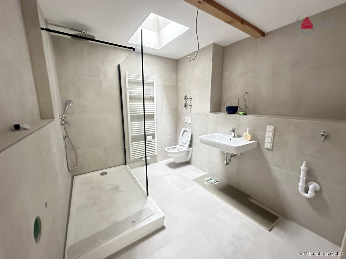 Die Wohnung überzeugt zudem durch sehr hohe Decken, ein modernes Bad, eine zeitgemäße Küche sowie einen Balkon. Die hochwertige und moderne Ausstattung unterstreicht den Charakter des Erstbezugs und sorgt für ein großzügiges, stilvolles Wohngefühl.