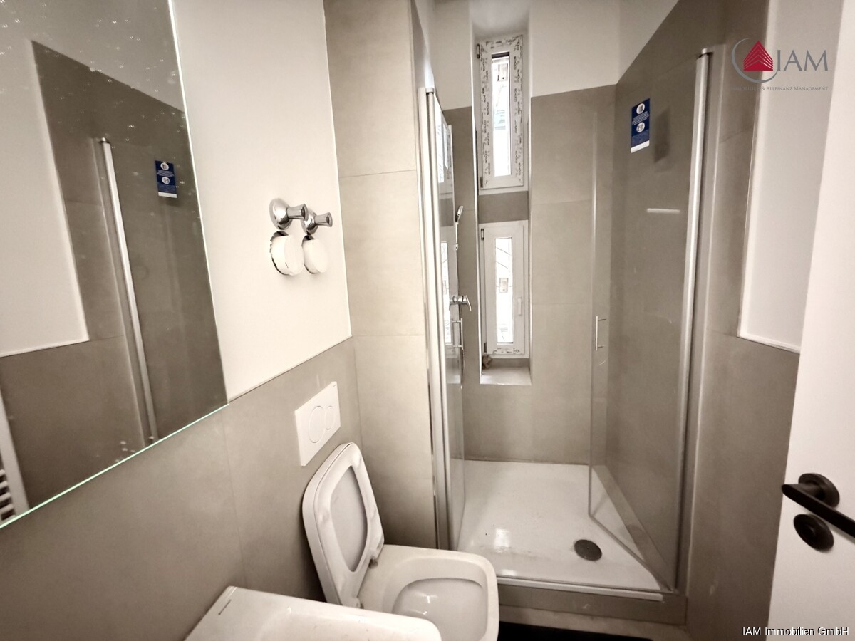 Links befindet sich die Küche, die einen direkten Zugang zum neuen Balkon erhält. Der Balkon befindet sich aktuell noch im Bau und wird zeitnah fertiggestellt. Ebenfalls auf der linken Seite liegt das neu gestaltete Badezimmer, das modern ausgestattet wird und ein frisches, zeitgemäßes Raumgefühl bietet.