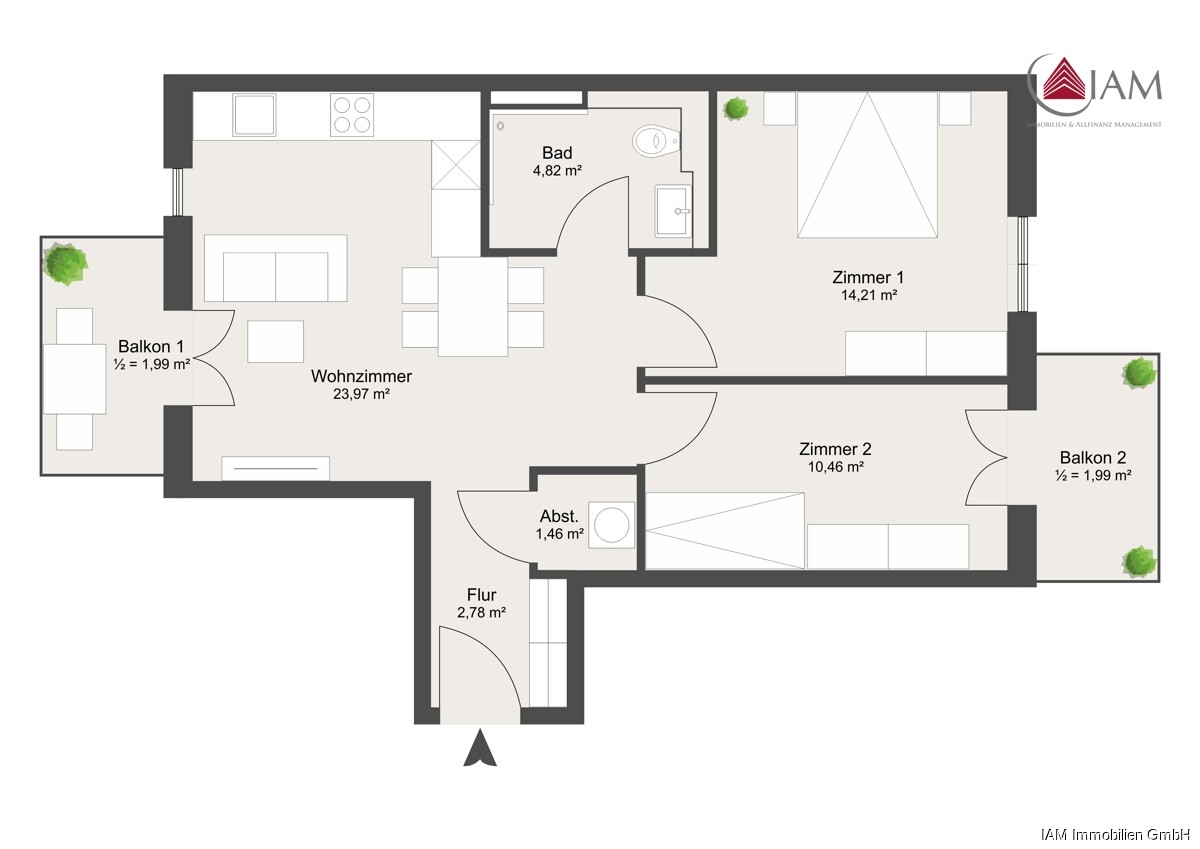 • Wohnfläche: 61,68 m²