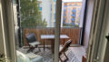 Überdachter Balkon mit Blick in den ruhigen Innenhof