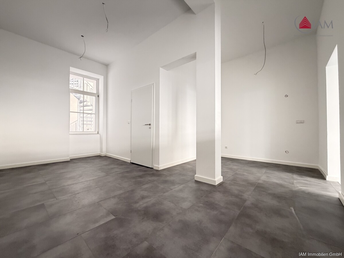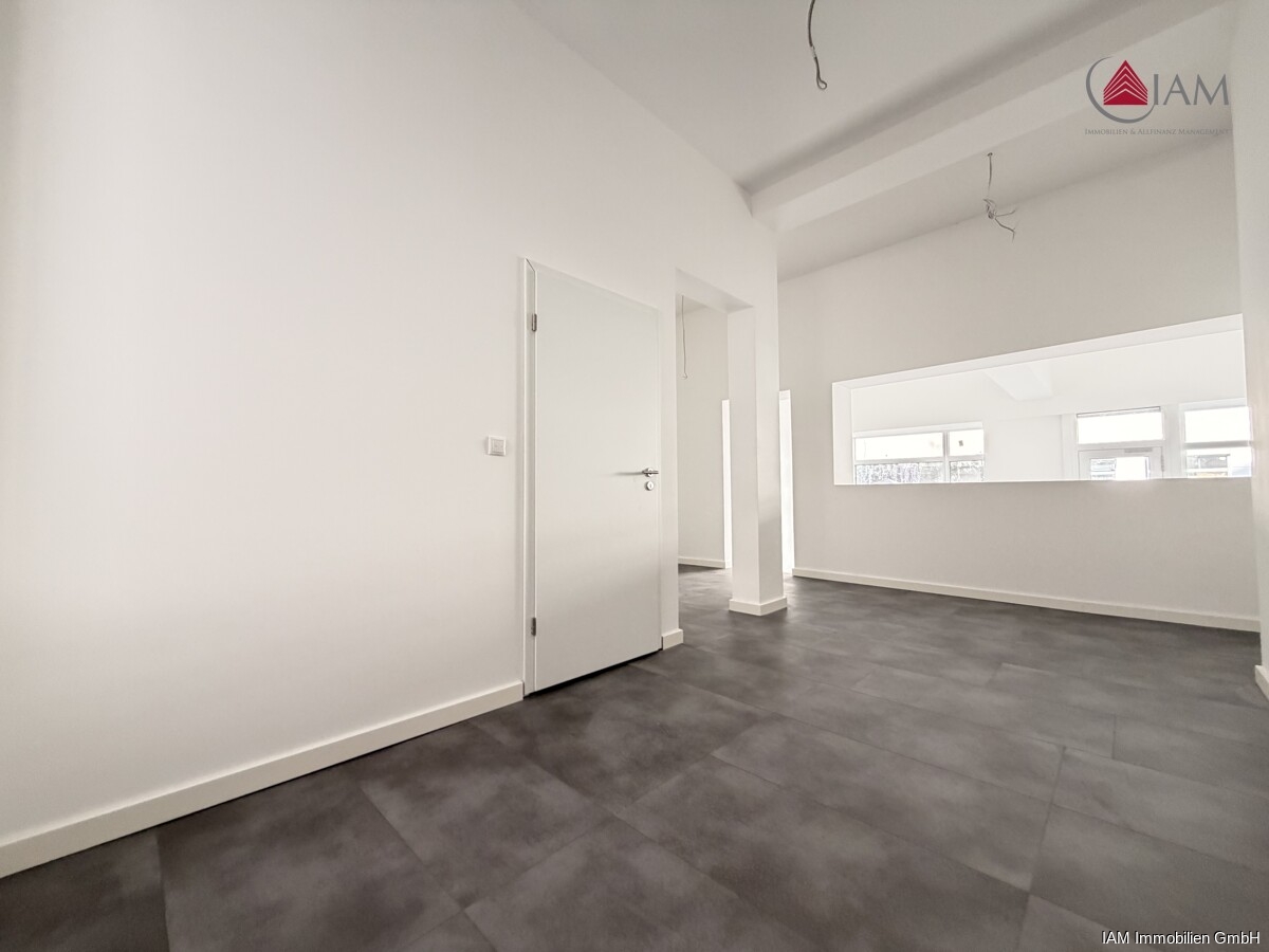 Der helle und großzügige Hauptraum eignet sich ideal für Kundenverkehr, Präsentation oder einen offenen Arbeitsbereich und schafft eine angenehme Atmosphäre für Besucher und Mitarbeitende. Ergänzt wird die Fläche durch eine separate Küche sowie einen eigenständigen Sanitärbereich, die den täglichen Betrieb komfortabel und effizient unterstützen.