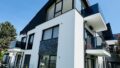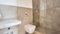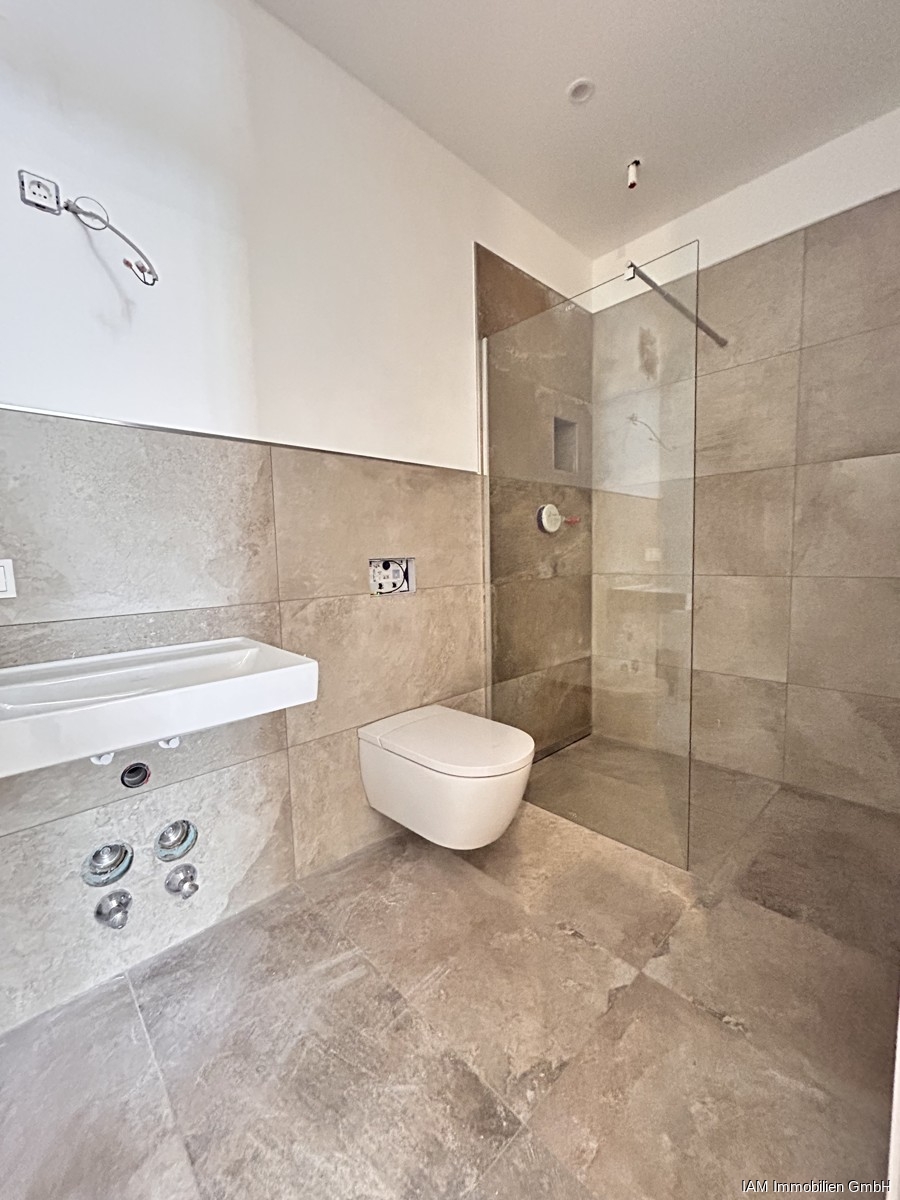 Abgetrennt vom Wohnbereich befinden sich das moderne Schlafzimmer. Das Bad ist ausgestattet mit edlen Fliesen, Waschbecken und WC mit Touchfunktion und Badewanne mit exklusiven Armaturen.