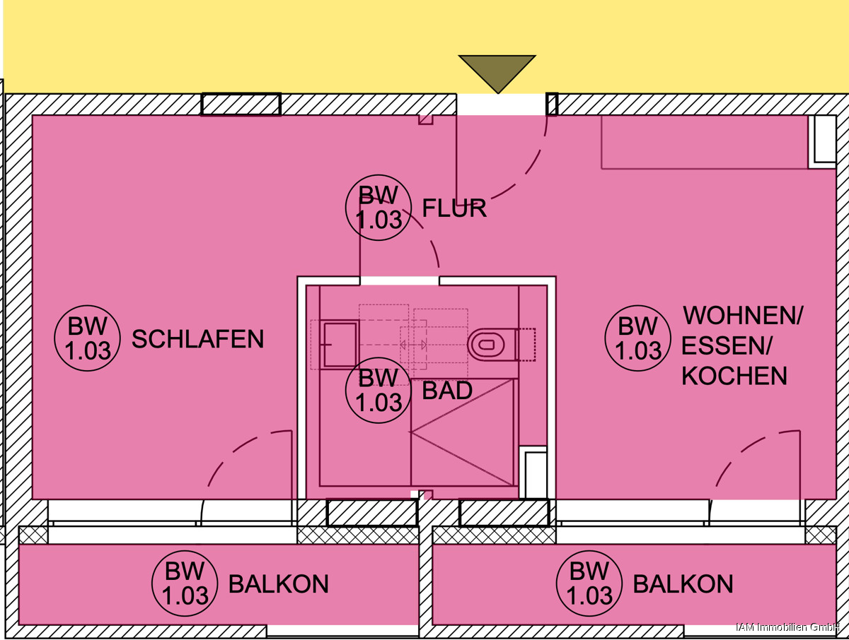 Der offene Wohn-Ess-Koch-Bereich (WEK) auf der linken Seite der Wohnung schafft eine einladende Atmosphäre – ideal für gesellige Abende oder entspannte Stunden. Vom Wohnbereich und Schlafzimmer aus haben Sie direkten Zugang zu beiden Balkonen.