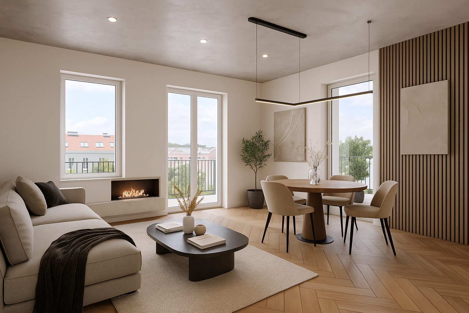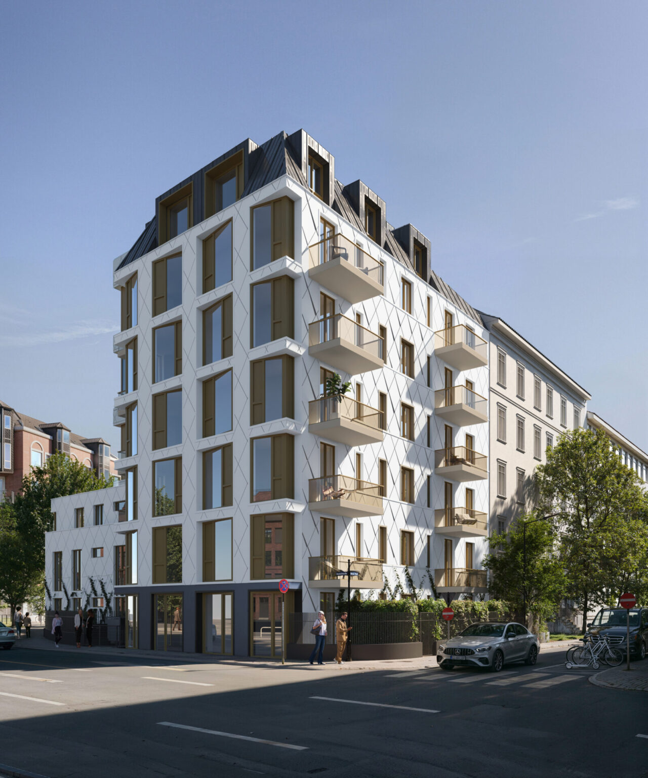 Insgesamt entstehen 27 Eigentumswohnungen, ergänzt durch zwei Gewerbeeinheiten im Unter- und Erdgeschoss, ideal für Büros, Praxen oder Dienstleister mit hohem Anspruch an Lage und Sichtbarkeit.