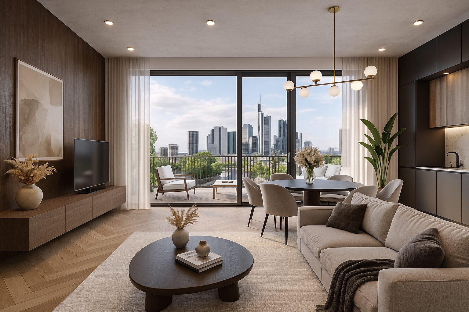 Als Highlight gilt das exklusive Penthouse mit einem weitläufigen Blick über die Dächer von Frankfurt.